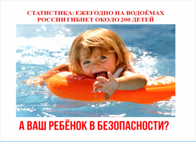 Уважаемые родители! Безопасность жизни детей на водных объектах во многих случаях зависит только от ВАС! В связи с наступлением жаркой погоды, в целях недопущения гибели детей на водных объектах в летний период обращаемся к Вам с убедительной просьбой провести разъяснительную работу о правилах поведения на природных и искусственных водоемах и о последствиях их нарушения. Этим вы предупредите несчастные случаи с Вашими детьми на воде, от этого зависит жизнь Ваших детей сегодня и завтра.