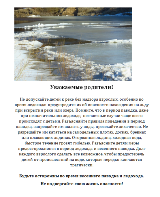 Памятка "Будьте осторожны во время весеннего паводка и ледохода"