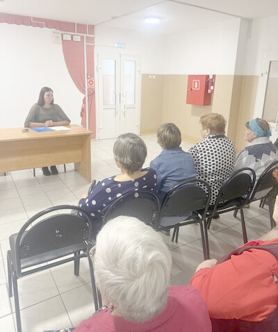В отделении специального дома для одиноких престарелых ГБУ АО «Белогорский КЦСОН» прошла информационная встреча со специалистами ФБУЗ «Центр гигиены и эпидемиологии» - помощником врача по общей гигиене Пацуковой Любовью Алексеевной и юрисконсультом по защите прав потребителей Геращенко Екатериной Сергеевной.