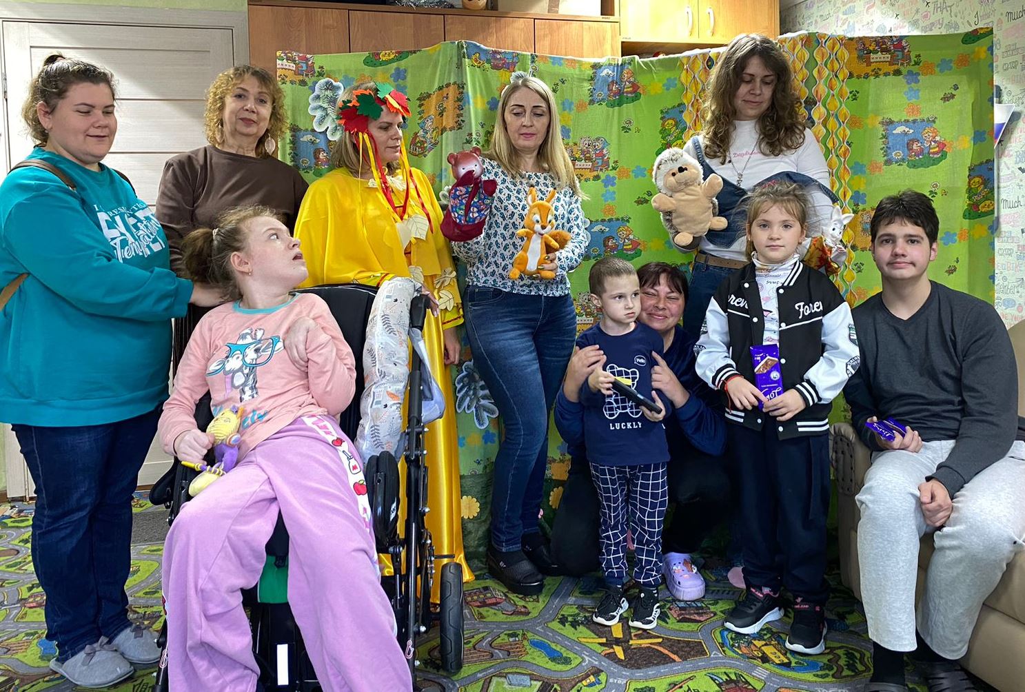 В отделении реабилитации несовершеннолетних с ограниченными физическими и умственными возможностями ГБУ АО «Белогорский КЦСОН» прошел праздник «Здравствуй, Осень». В честь завершения десятидневного интенсива специалисты отделения показали ребятам кукольный спектакль, поиграли в игры, вместе с Хозяйкой Осенью помогали героям готовиться к зиме. Маленькие получатели социальных услуг приняли дары от лесных жителей, и получили положительные эмоции от праздника.