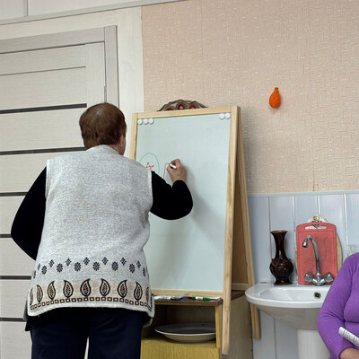Специалисты социально-реабилитационного отделения ГБУ АО «Белогорский КЦСОН» провели с участницами клуба «За чашкой чая» сеанс арт-терапии. На этот раз, вместо привычных красок и бумаги, в ход пошла магнитная доска.